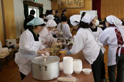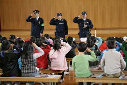 11日に,2年生とたいよう学級の子どもたちが,七草がゆやお正月あそび・安全の学習をしました。朝早くから,久我女性会の方々が準備してくださいました。実際に七草を見せていただいてから,おいしく七草粥をいただきました。はじめて食べた子どもも多く,喜んでおかわりをしていました。向日町警察署の方々や久我交番の警察官の方も来てくださり,安全な暮らしについても教えていただきました。