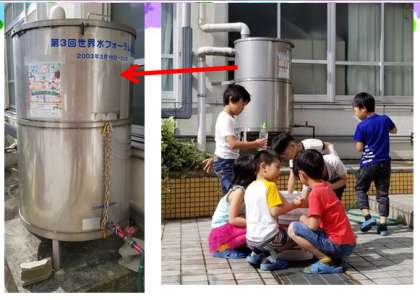 学校では,雨水貯留タンクを活用した水やりが定着しています!