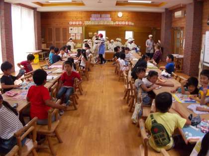 中島先生から食育指導をしていただきました。今日は食べ物の3つの栄養と働きについて学習しました。いろいろな食べ物を赤・黄色・みどりにわける活動も楽しく行いました。給食はランチルームです。2学級で楽しく食べました。