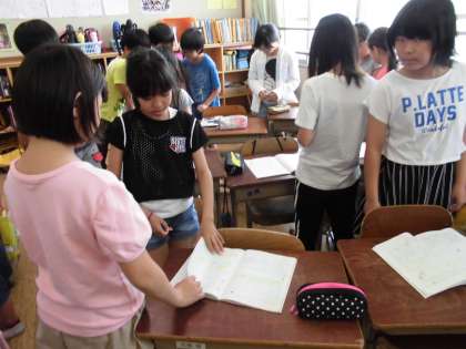 子どもたちが「ここが一番自信のあるページだ!」というところを開き,それをみんなで見合いました。