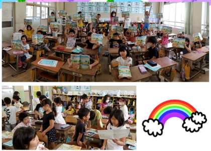 好きな色について,積極的尋ねたり,答えたりする活動をするとともに,自分の好きな色で虹をかき,仲間と英語で,交流しました。