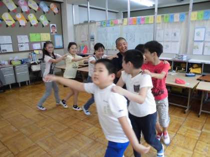 各国の人気の遊びをたいよう学級の友だちが紹介,一緒に遊びました。