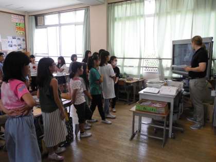 ネイティブの発音に目を輝かせて,一生懸命,聞いた音を真似していました。とても上手でした。これからも楽しく学習していきましょうね!