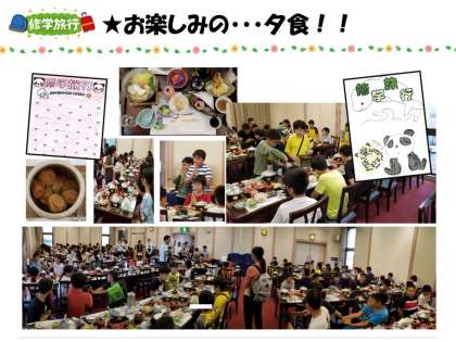 修学旅行のお楽しみの一つ,夕食の時間です。