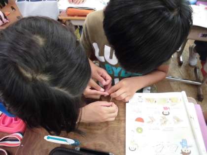 「え…できひん…。」「ほどける〜」など子どもの叫びが聞こえた1時間でした。