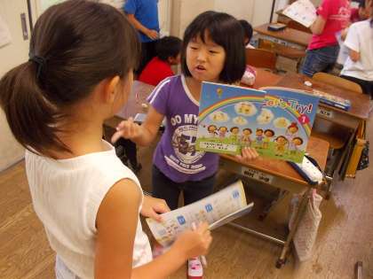 外国語活動で好きなものを尋ねる言い方を学習しました。今日はともだちの好きなものをよそうして,尋ねてまわる活動をしました。予想が全部あたった!○○さんと同じだった!など楽しく活動できました。