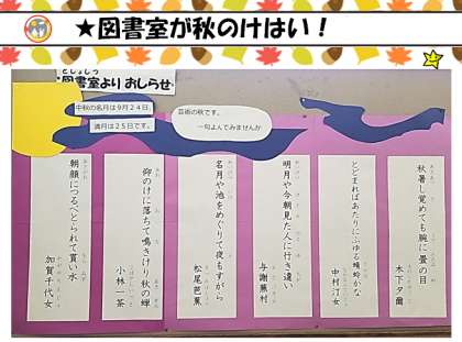 ★図書室が秋のよそおい!(2018/09/06)