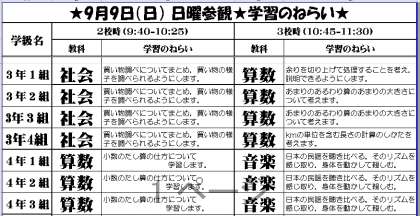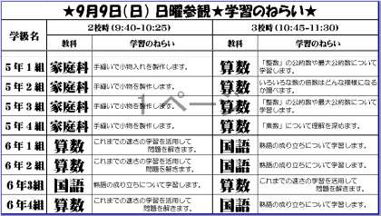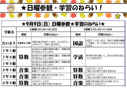 ★日曜参観・学習のねらい!(2018/09/07)