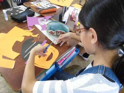 ということで,ハロウィンパーティで仮装するために「お面作り」をしました。