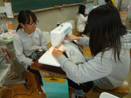 ミシンの使い方をずっと隣で教え合っている姿,