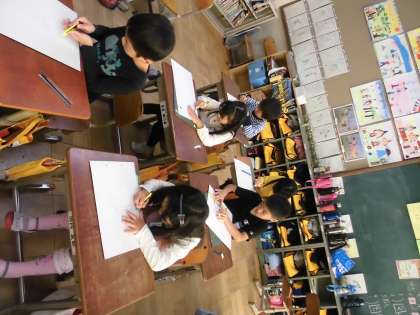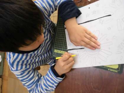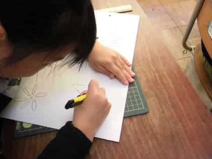夏前にカッターナイフを使った時には,まだまだ慣れない手つきで悪戦苦闘していましたが,今回はどの子も上手に使っています。