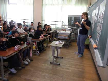 子どもたちは真剣な表情でALTの先生のお話を聞いていました。