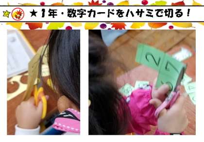 ★1年・数字カードをはさみで切る!(2018.11.09)