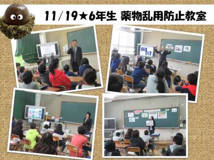 向日町警察署よりスクールサポーターの先生方に来ていただき,6年生が「薬物乱用防止」について学びました。
