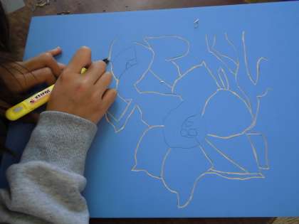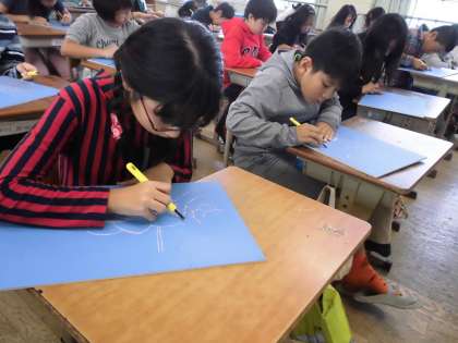 今年も版画の季節がやってきました。今年は「一版多色刷り」に挑戦します。テーマは「花」です。みんな,集中して彫っていました。完成をお楽しみに!