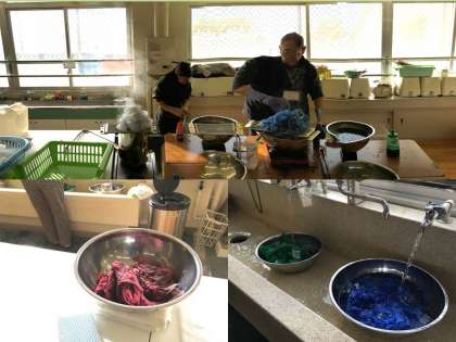 子どもたちも真剣に,京の匠の方々の話を聞きながら,実際に手を動かしていました。綺麗な発色を放つ染めが仕上がりました♪