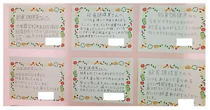 ◆六年間,学校がある日は,毎日給食を作ってくださりありがとうございました。とってもおいしかったです。