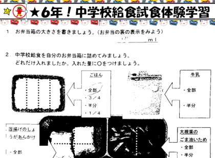 中学校の給食を自分のお弁当箱に適切につめる学習をとおして中学校給食に親しむ学習をしました!
