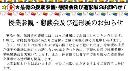 本年度,最後の授業参観・懇談会及び造形展のお知らせ!