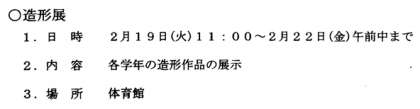 ★最後の授業参観・懇談会及び造形展のお知らせ!(2019.02.18)