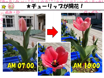 午前7時には,つぼみだったチューリップ!