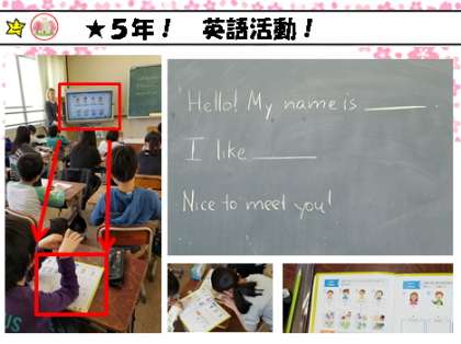 今日の5年の英語活動では,教科書とデジタルコンテンツを使い,いろいろな活動をしながら,英語での自己紹介の学習をしました!