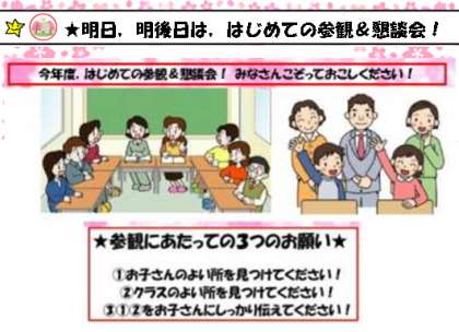 ★明日,明後日は,はじめての授業参観・懇談会!(2019.04.22)