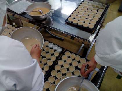 ういろうは日本で昔から食べられている和菓子の一つです。米粉と黒砂糖・砂糖をまぜて,スチームコンベクションオーブンで蒸して作りました。