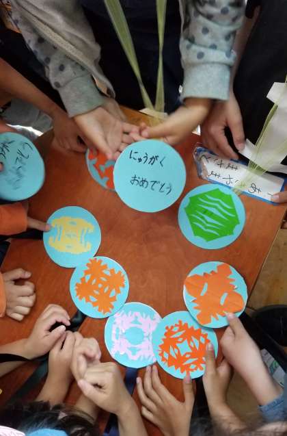 1年生迎える会でつけてもらうメダルを作りました。
