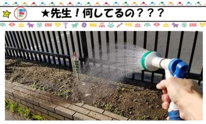 子どもたちには,ただ,土に水をかけている異様な光景に見えるのでしょうね。