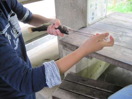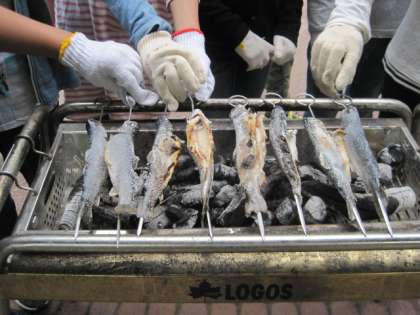 「いいにおいがしてきた!」「串で焼いたイワナはとてもおいしい!」