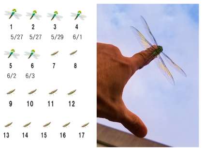 ★トンボは,前の2枚の羽と後ろの2枚の羽をべつべつに動かすことができるのです!飛んでいるときにバランスをとるため!また,急に向きをかえたり,飛びながら止まっていたりできます!