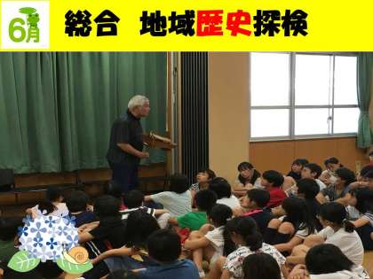 今週の木曜日,子どもたちは地域を歩いて,歴史探検をします。今日は,地域の歴史に詳しい先生からフィールドワークに向けて事前学習を行いました。地域には歴史の跡がたくさん残されていることに,子どもたちは驚きの様子でした。