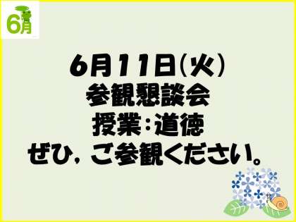 6月11日(火)は参観懇談会です。学習面や生活面などのあらゆる場面で,最高学年としての自覚を持ち,6年生の子どもたちは,久我の杜小学校を引っ張ってくれています。参観日当日は,教室の掲示物「人権ポスター」にも注目です。お楽しみに!!