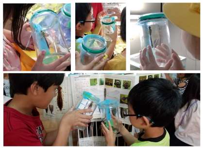 ギンヤンマ羽化成虫360度観察ボトルを絵本の前まで持って行って,オス,メスの判別をしている子もいました!