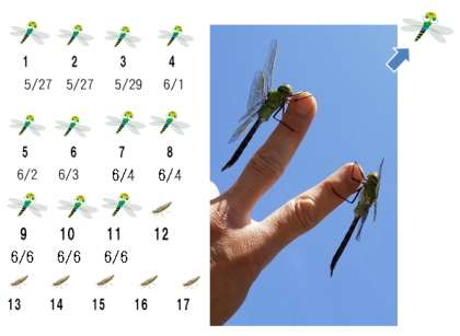 ギンヤンマ羽化成虫360度観察ボトルに入れて,子どもたちに見てもらった後,大空へ!