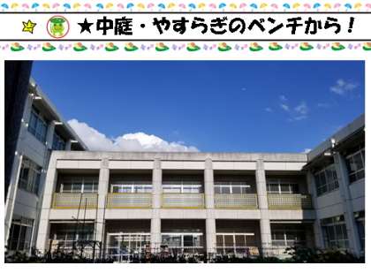中庭のやすらぎのベンチには,1,2年の子がよくすわっています!