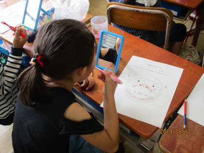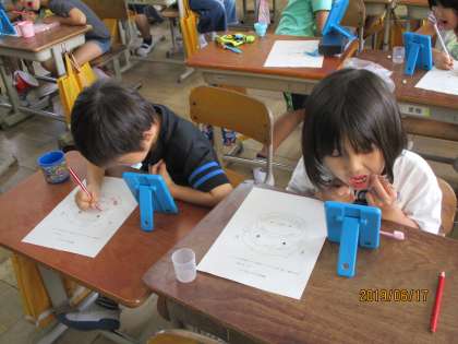 カラーテスターを使って歯の磨き残しを確認し,丁寧に磨いていきました。