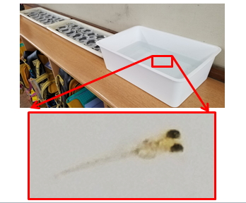 孵化した子メダカが泳いでいました!