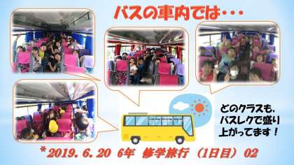 バスの中は,カラオケ大会やクイズ大会などのバスレクで盛り上っています!