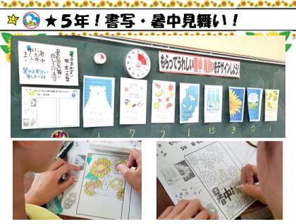 例示された暑中見舞いを足場に,アイデアあふれる暑中見舞いをデザインしていました。