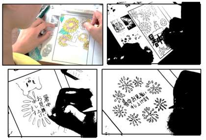 (絵図がはっきりわかるように白黒加工してあり,手の部分が黒くなっています。)