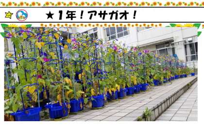 とてもたくさんの花を咲かせている1年生のアサガオ!