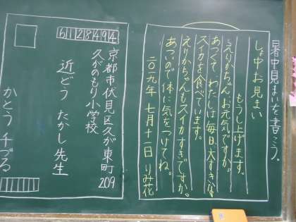 その後,暑中見舞いの文面も考えて,読む人を思って丁寧な文字で書き上げました。