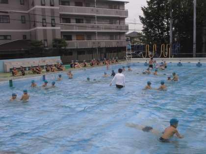 今日はあいにくのお天気でしたが,5時間目は体育水泳学習の予定でした。