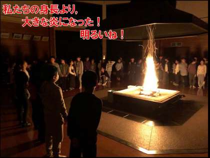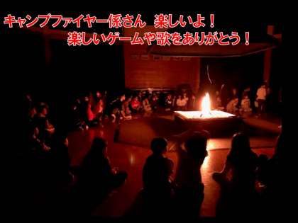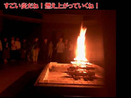 みんなで,大きなひとつの炎を囲み絆を深めます。