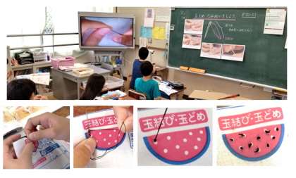 授業の最後には,ほとんどの子が,1回以上の玉どめ,玉結びが,できるようになりました!