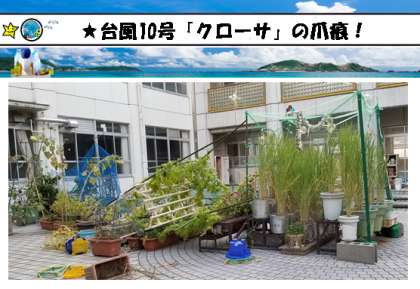 学校における台風10号の爪痕は,中庭に見ることができました!