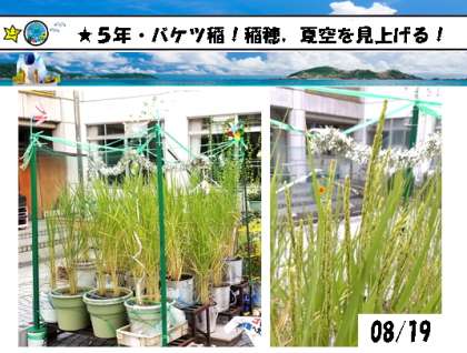 ★5年・バケツ稲!稲穂,夏空を見上げる!(2019/08/19)