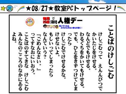 毎月,すべての教室に貼り出される人権デーの詩を